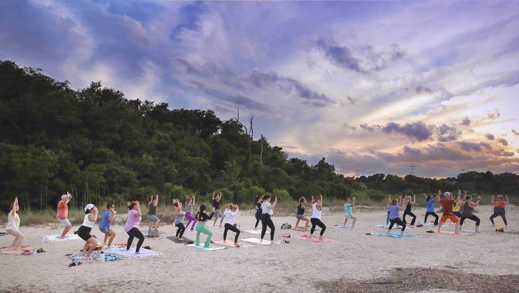 Please bring water, bug spray, layers if needed, and a large beach towel or beach blanket. Leave your yoga mat at home, as yoga mats and sand don’t do well together.